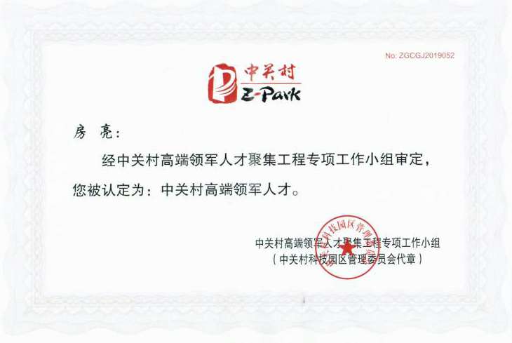 这一次房亮博士获得2019年度中关村高端领军人才的殊荣,不仅是对房亮博士创业领军能力的认可,也是对国科KaiYun网页版·网站官网-开云(中国)未来发展的认可。